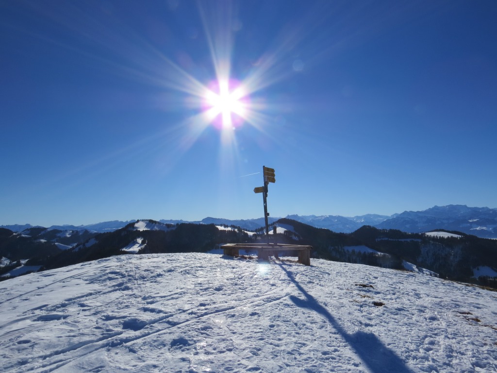 Wegweiser auf dem Hüttchopf Datum 29.04.2015