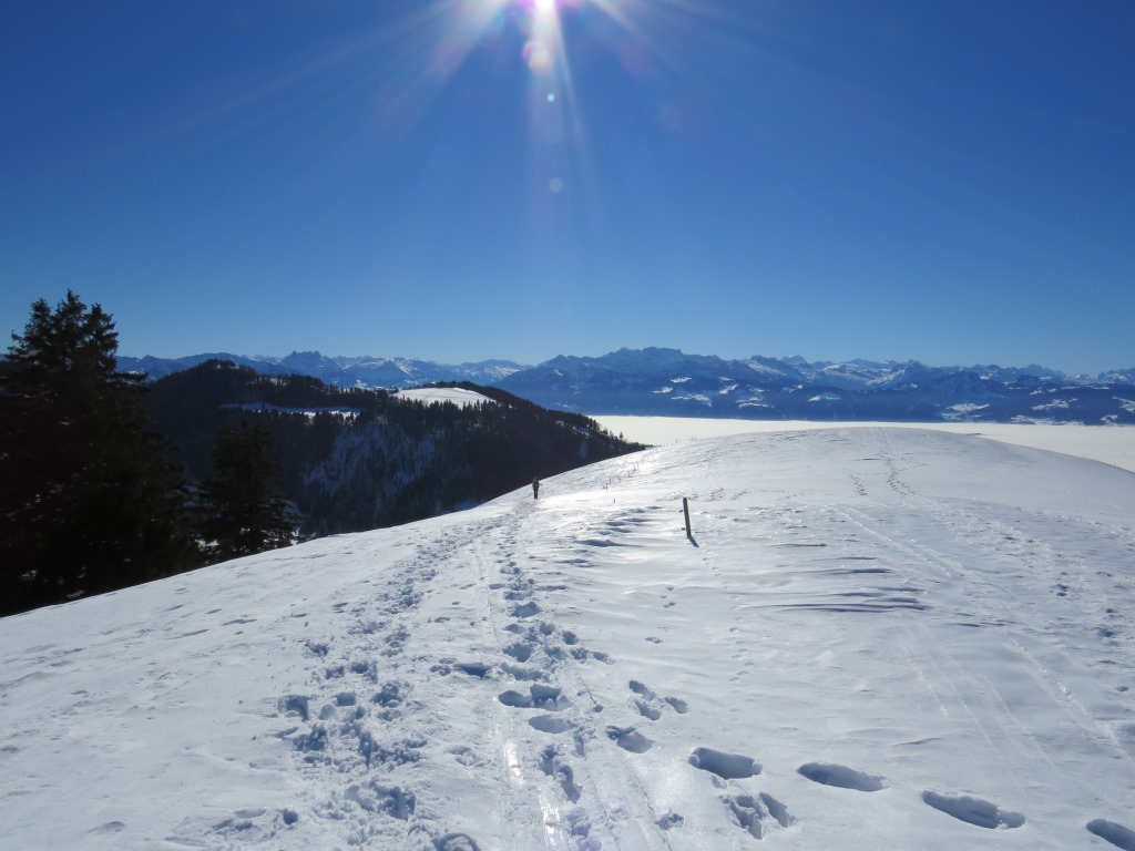 alles dem breiten Hügel auf der Brandegg entlang, geht es nun Richtung Scheidegg Datum 29.04.2015