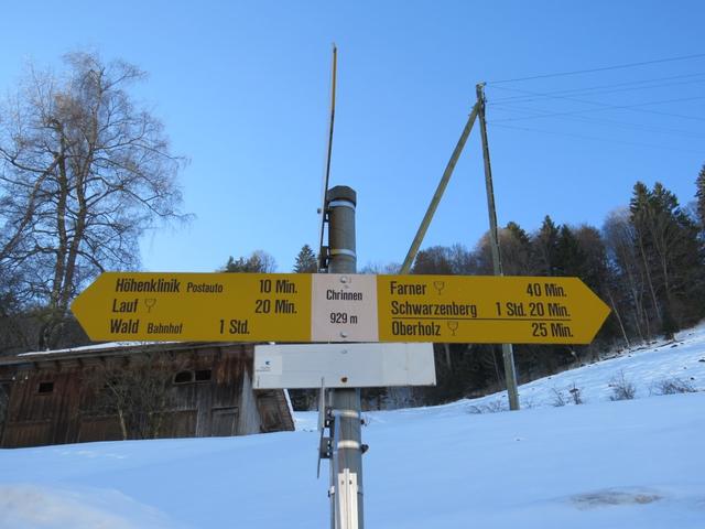 Wegweiser bei Chrinnen 929 m.ü.M. unser nächstes Ziel ist die Höhenklinik Datum 29.04.2015