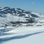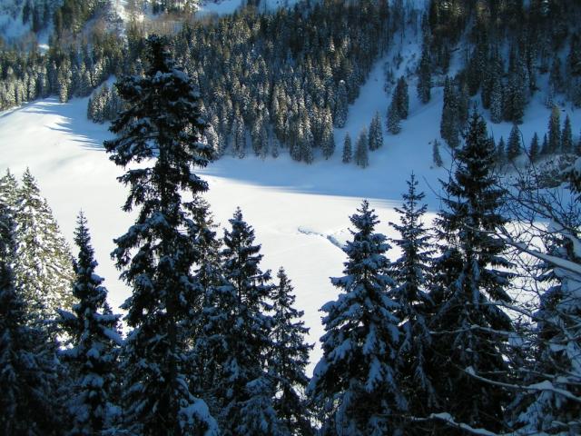 Blick auf den zugefrorenen Sämtisersee