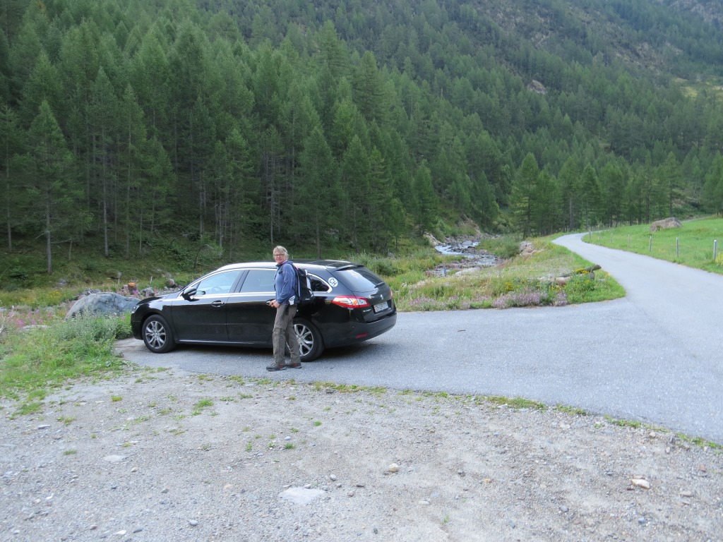 etwa 1km taleinwärts vom Stausee im Zwischbergental, sind Parkmöglichkeiten vorhanden