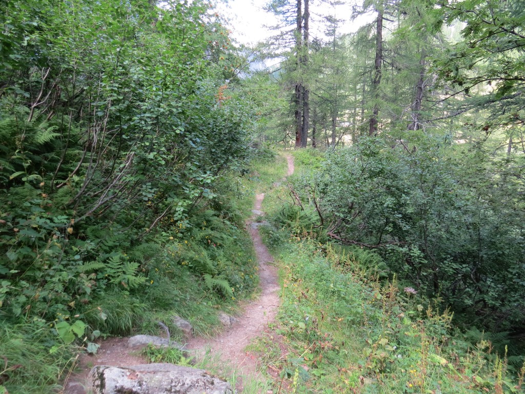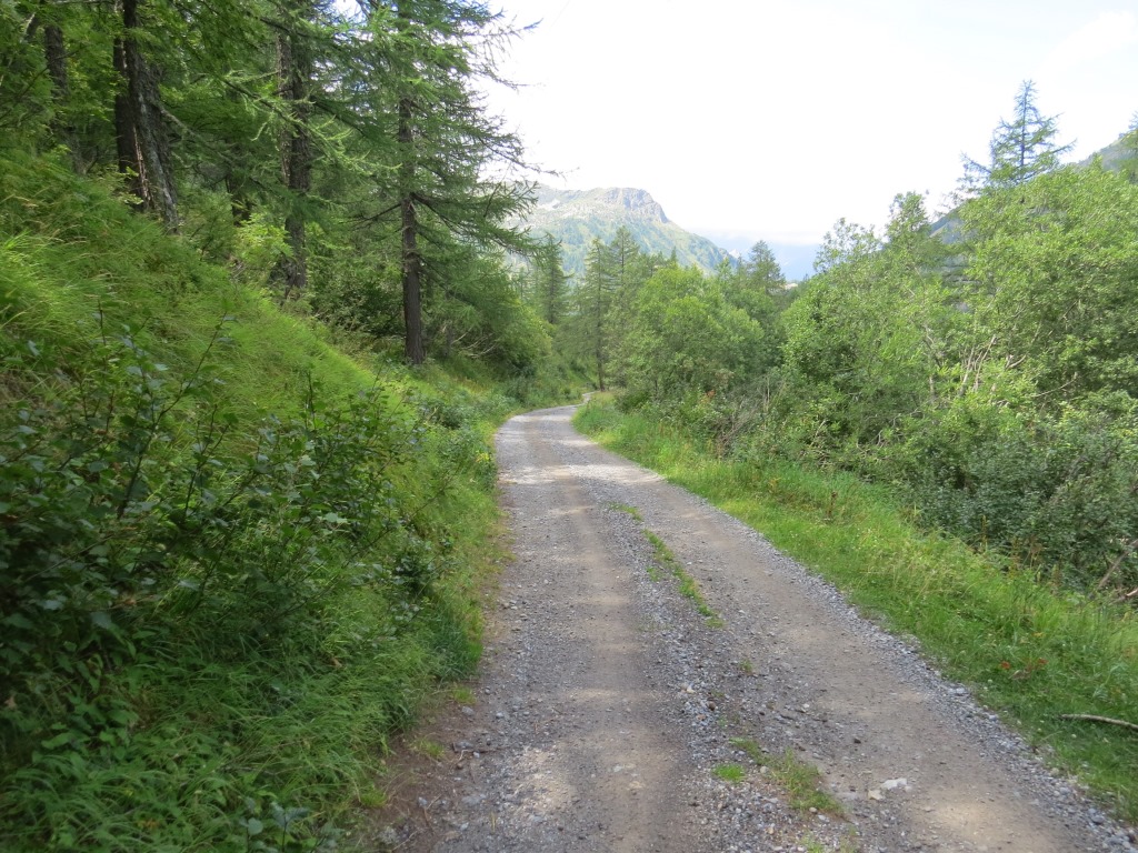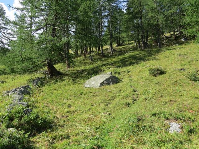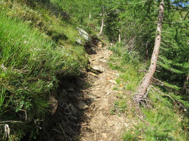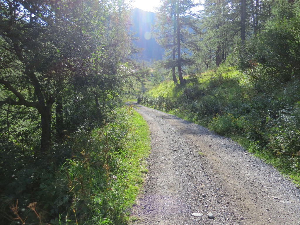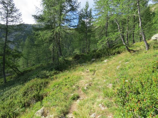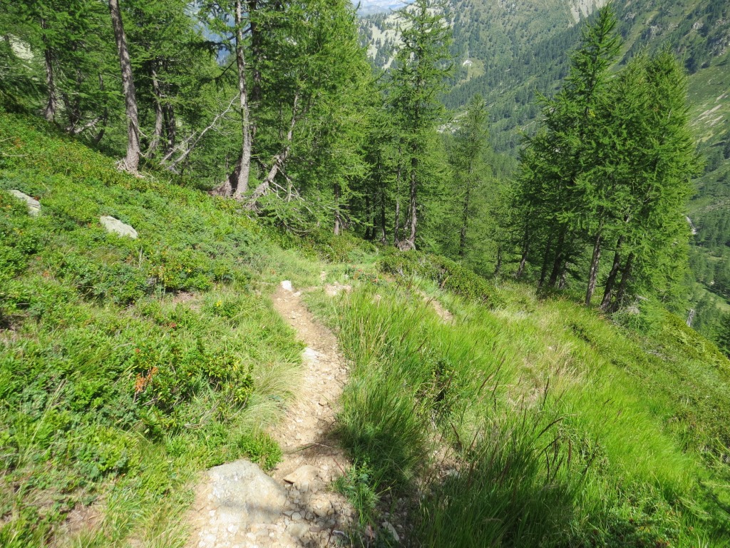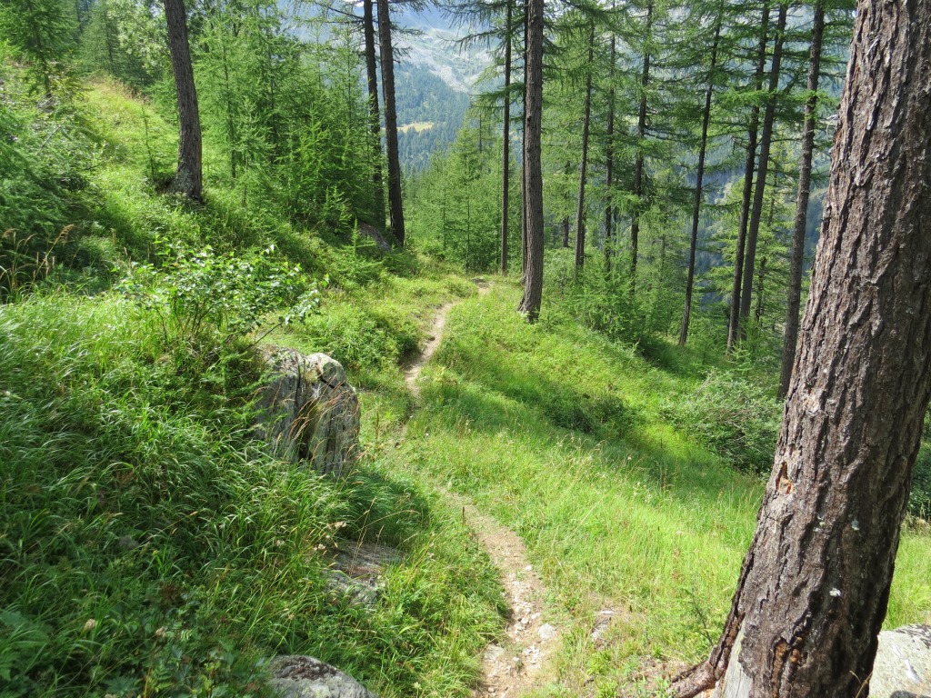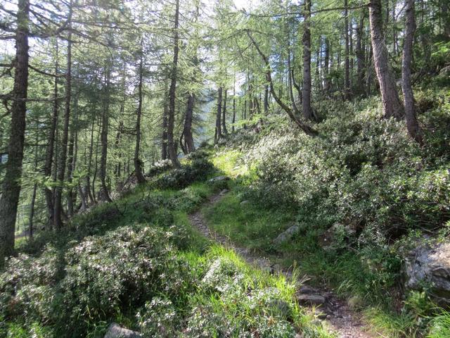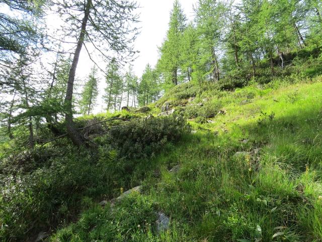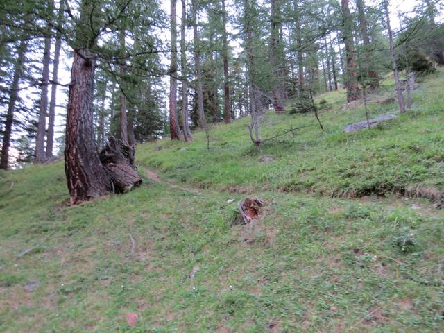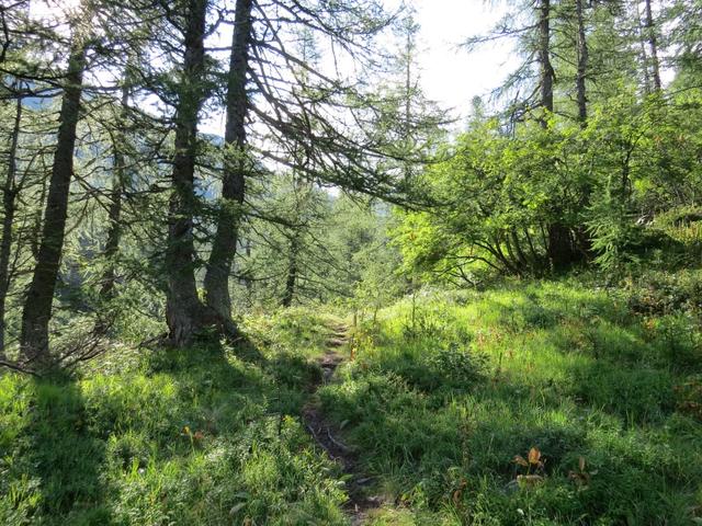 ...um danach rechts abbiegend durch den schönen Lärchenwald abwärts