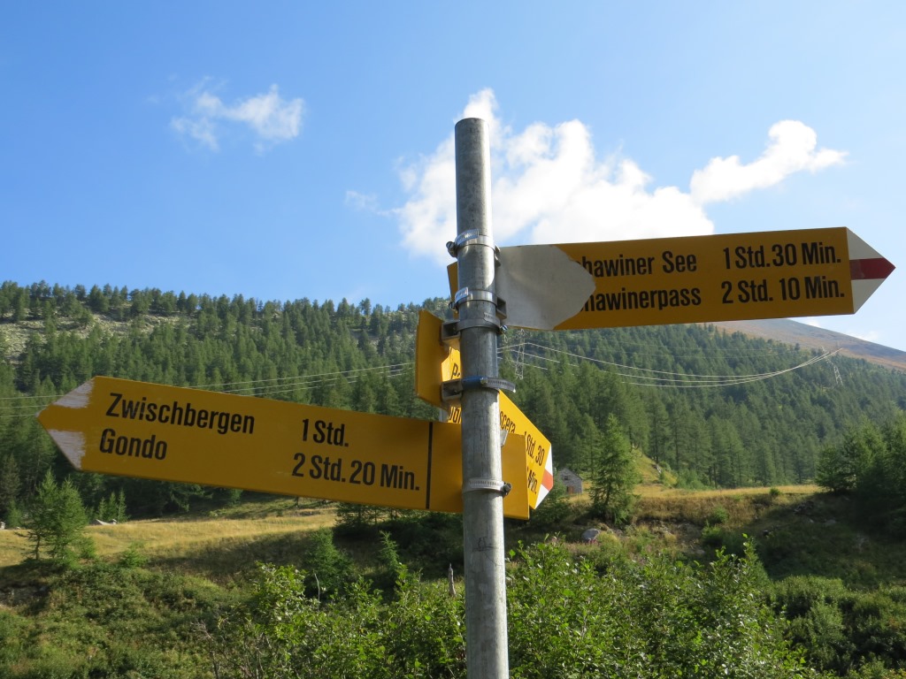 Wegweiser beim Parkplatz unser erstes Ziel lautet Tschawinersee