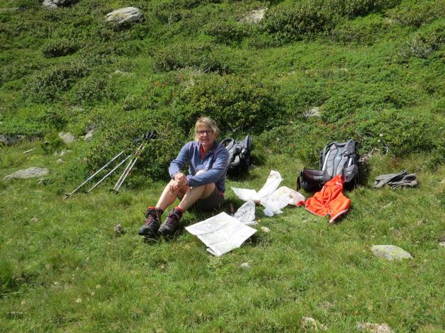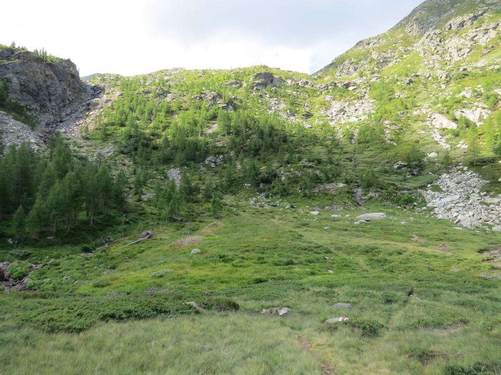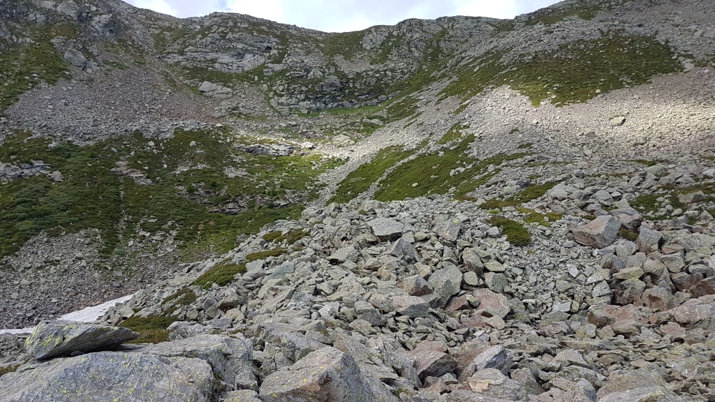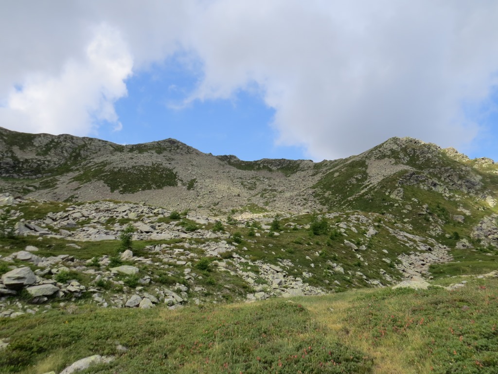 über Geröll und Buschwerk steigen wir mühsam hinauf Richtung Tschawinerpass
