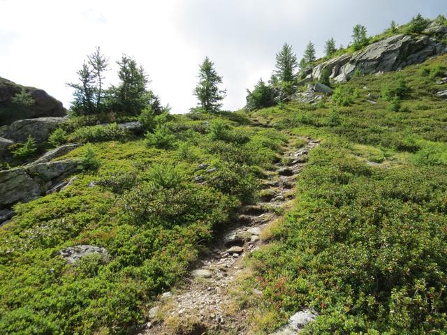 wir folgen den nur noch schwach erkennbare Bergpfad...