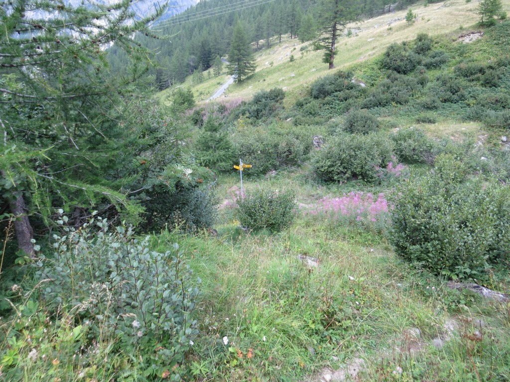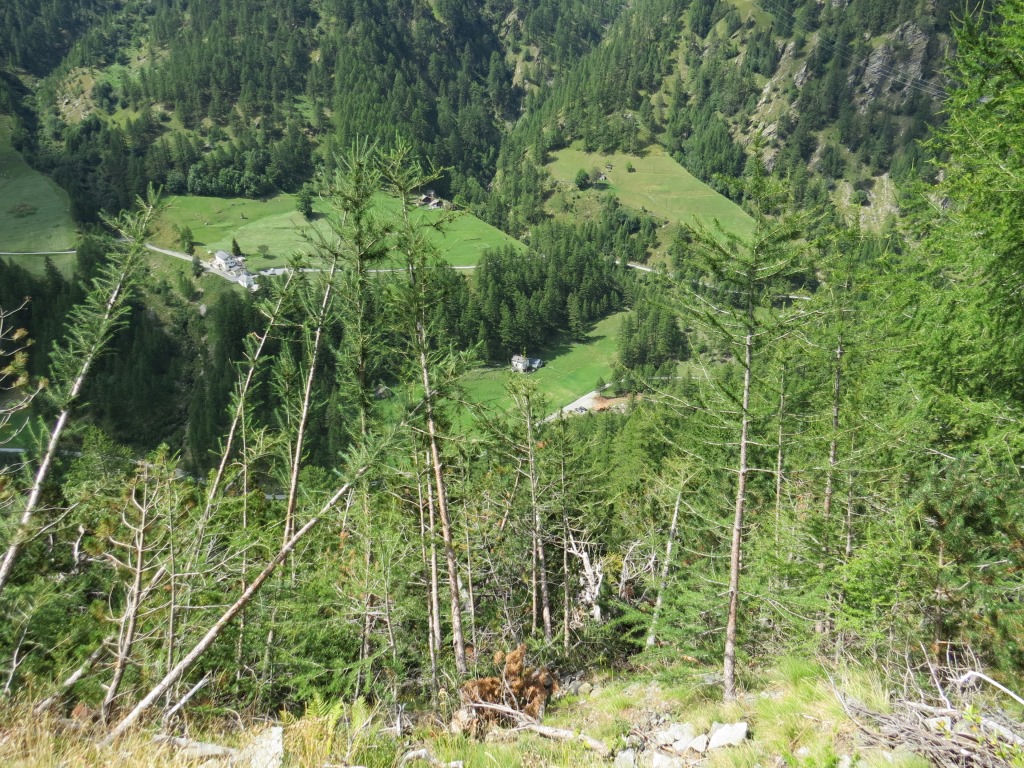 die grossen Schleifen der Forststrasse abkürzend, geht es schnell abwärts