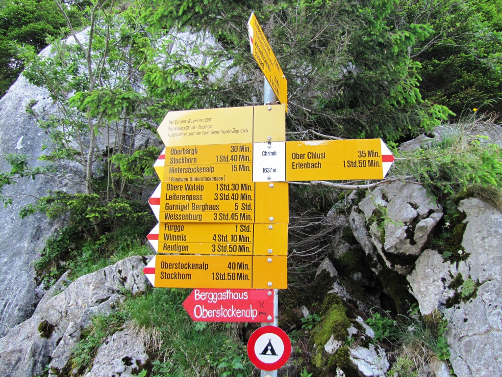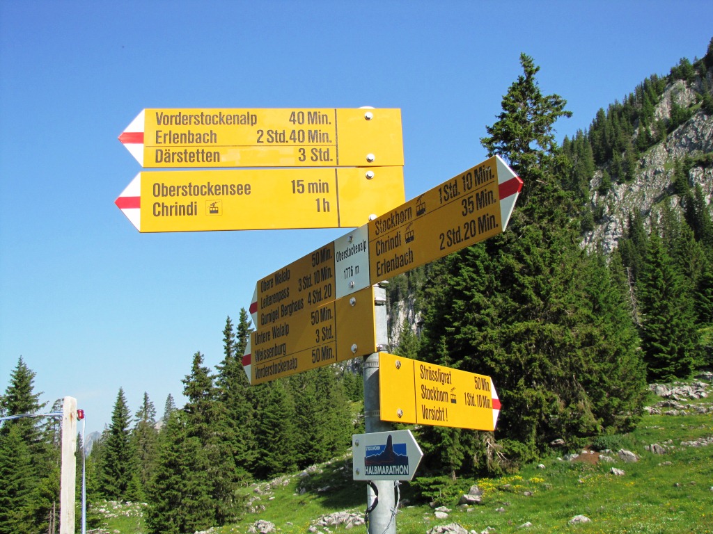 Wegweiser bei der Oberstockenalp 1785 m.ü.M.