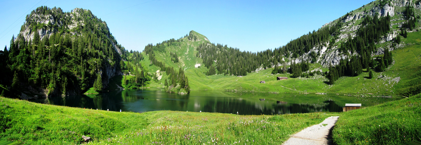 Breitbildfoto mit Blick auf die Oberi Walalp und die Baachegg