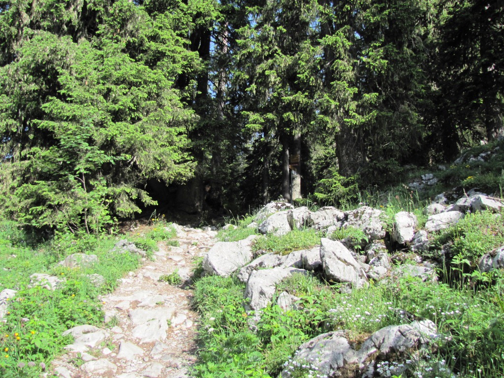 der Bergweg führt zuerst durch einen kleinen Wald