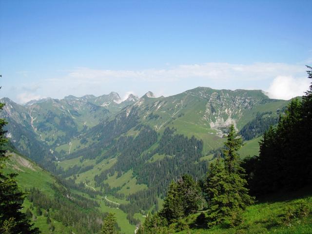 Blick zum Gantrisch mit dem Leiterenpass. Unser heutiges Ziel