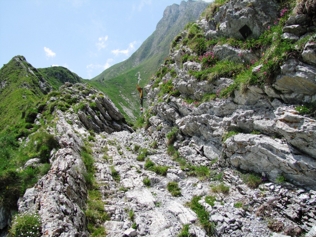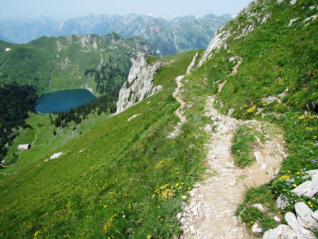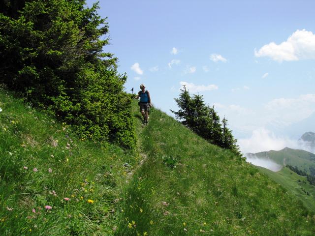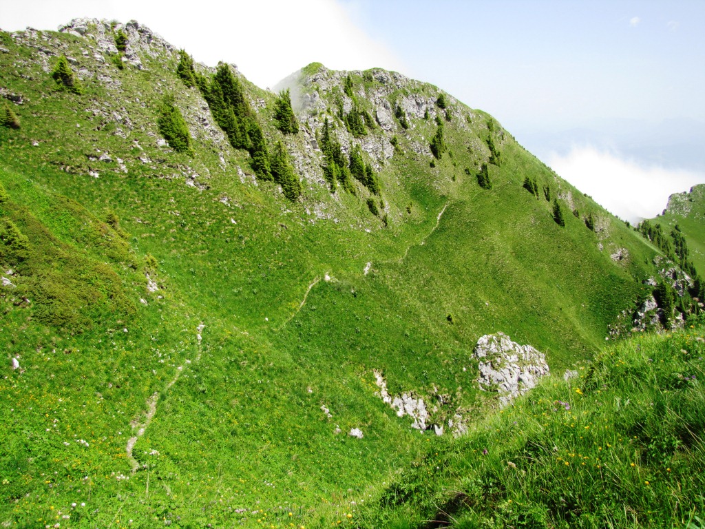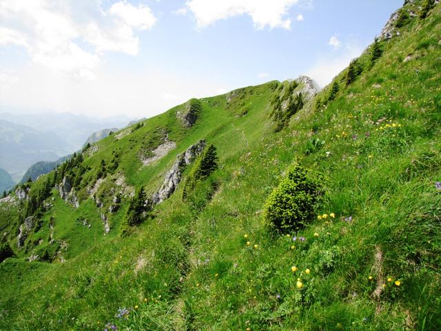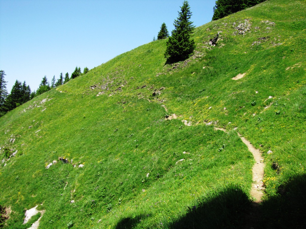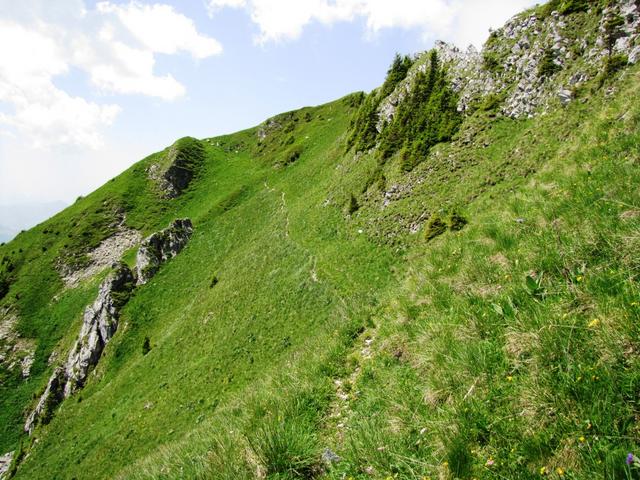 in leichtem Auf und Ab zieht sich der Bergweg durch die abschüssige Südhänge