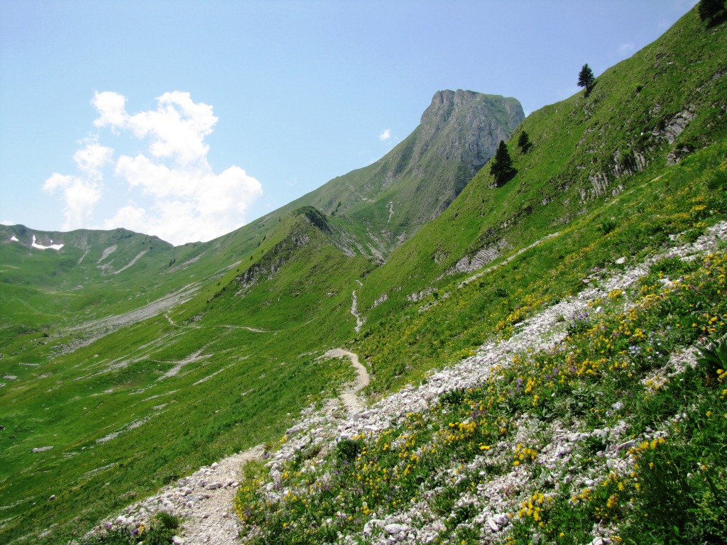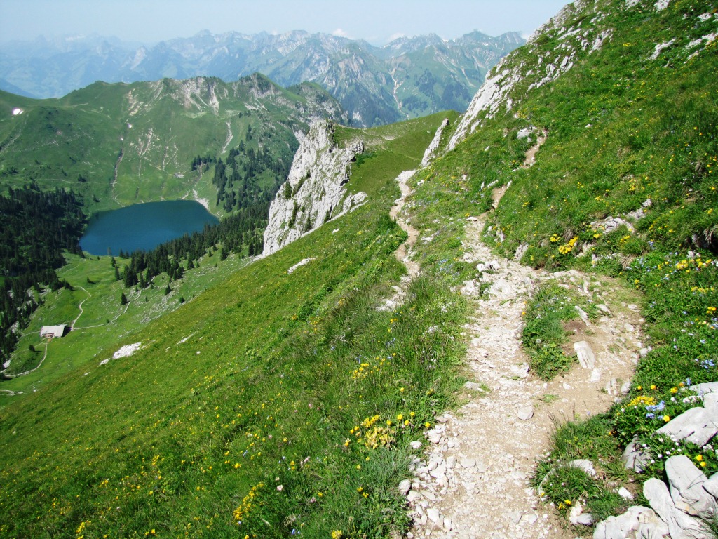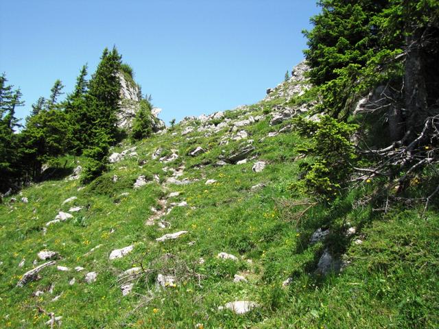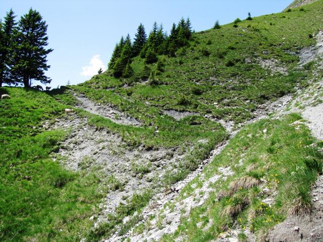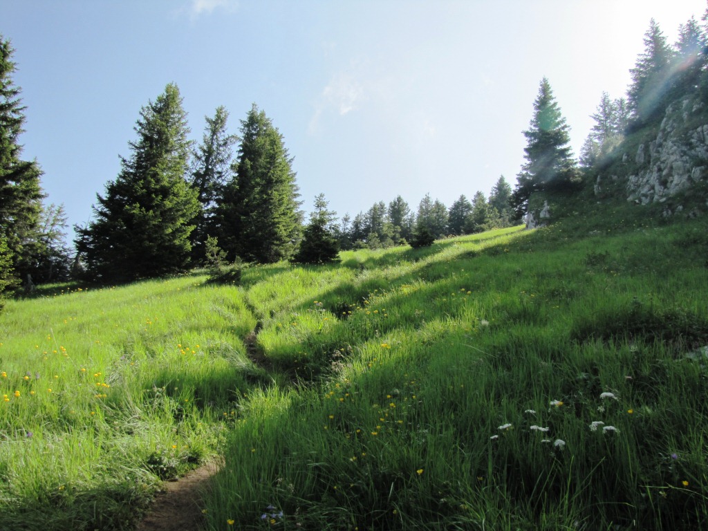 in leichtem Auf und Ab zieht sich der Bergweg durch die abschüssige Südhänge