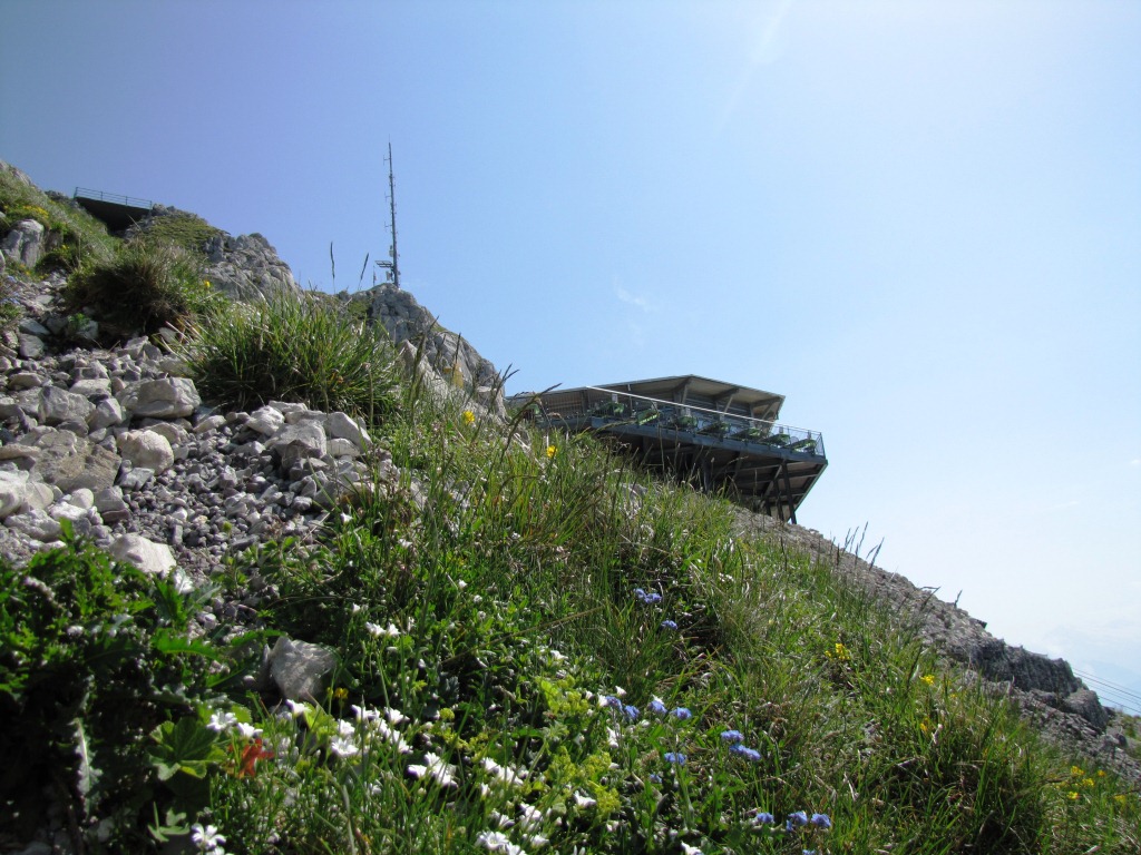 Blick zurück zum Stockhorn mit Aussichtsrestaurant