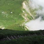 Blick zurück oder besser gesagt runter. Der Möntschelespitz kann auch weiter unten umgangen werden