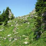 jetzt wird es so richtig steil. Auf dem Weg zum Möntschelespitz