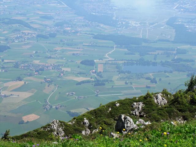 Tiefblick nach Uebeschi und Amsoldingen. Dort waren wir auch schon auf dem Jakobsweg