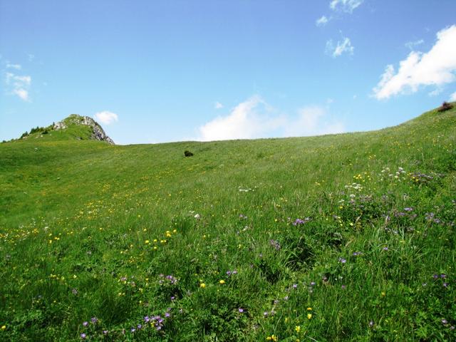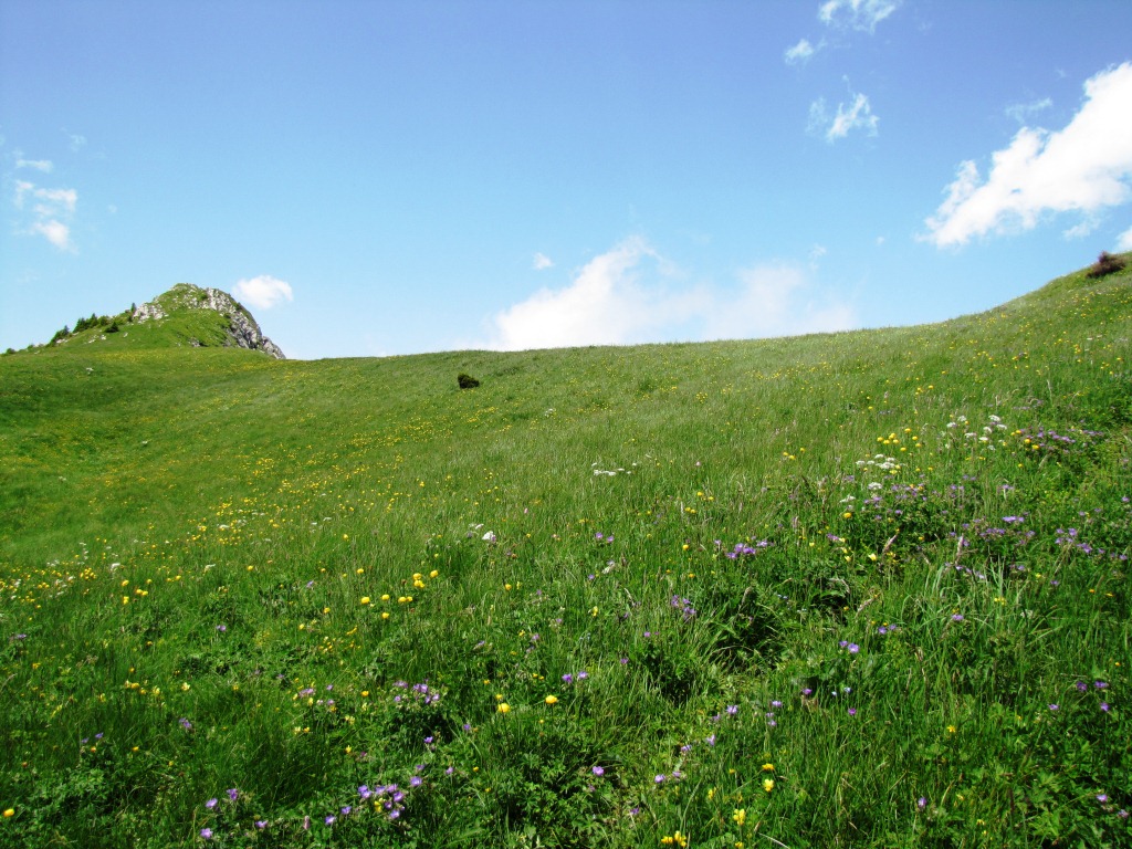 über Grashänge mit unzähligen Blumen