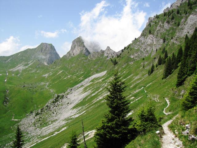 bei Chrumfadeflue ist der ganze Höhenweg bis zum Leiterenpass gut ersichtlich