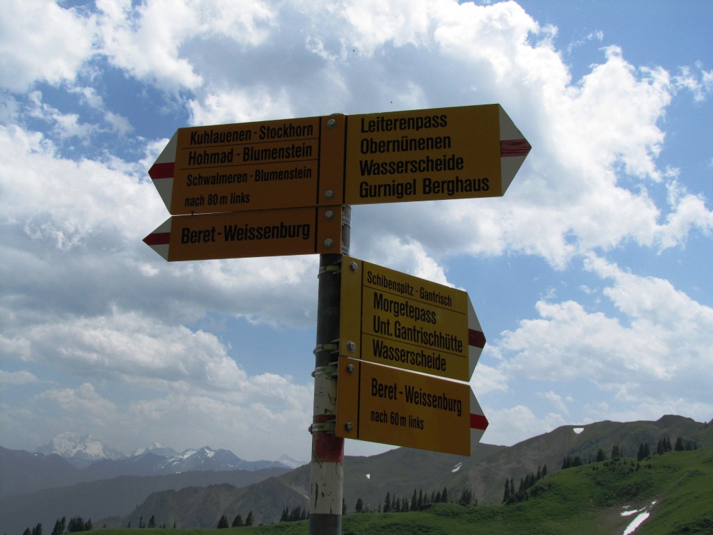 Wegweiser bei Gurnigel - Wasserscheide