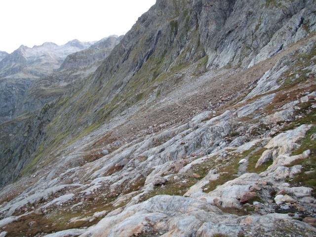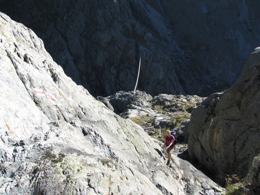 über glattpolierten Felsen geht es weiter Richtung Windegghütte