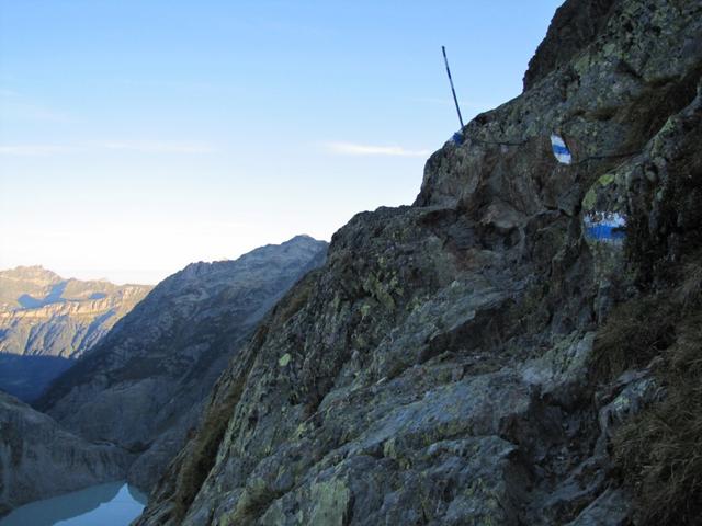 wir erreichen die Westflanke des Telltistock. Das ausgesetzte Teilstück beginnt