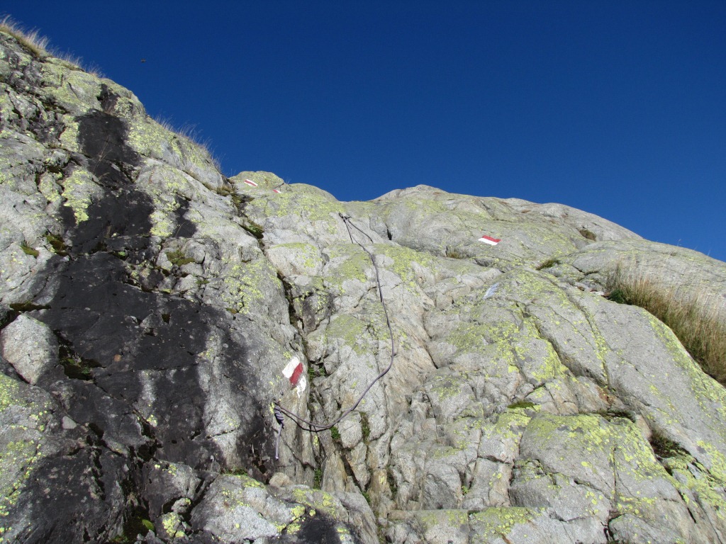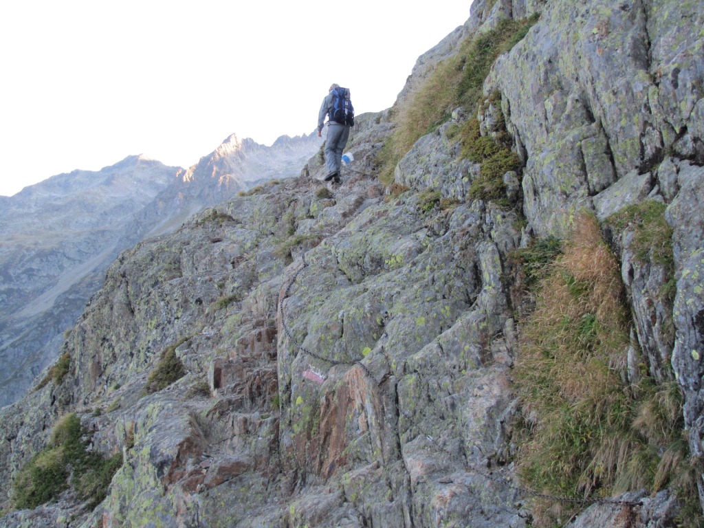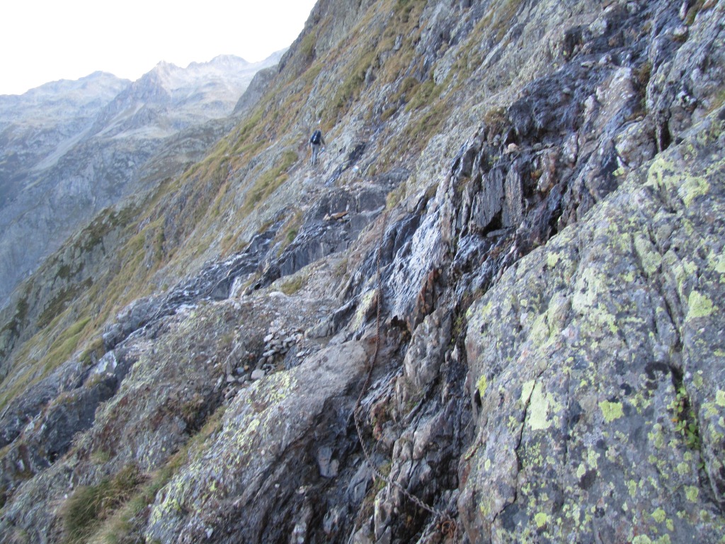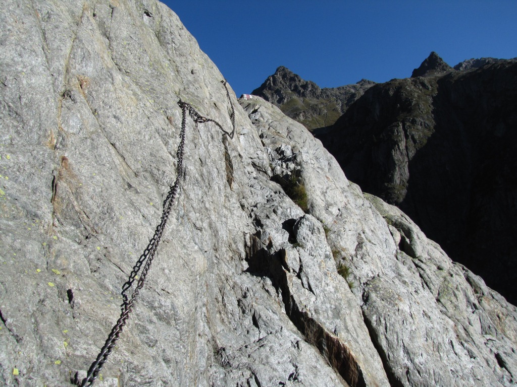 trockener Fels und Ketten als Sicherung, so ist der Weg gut machbar