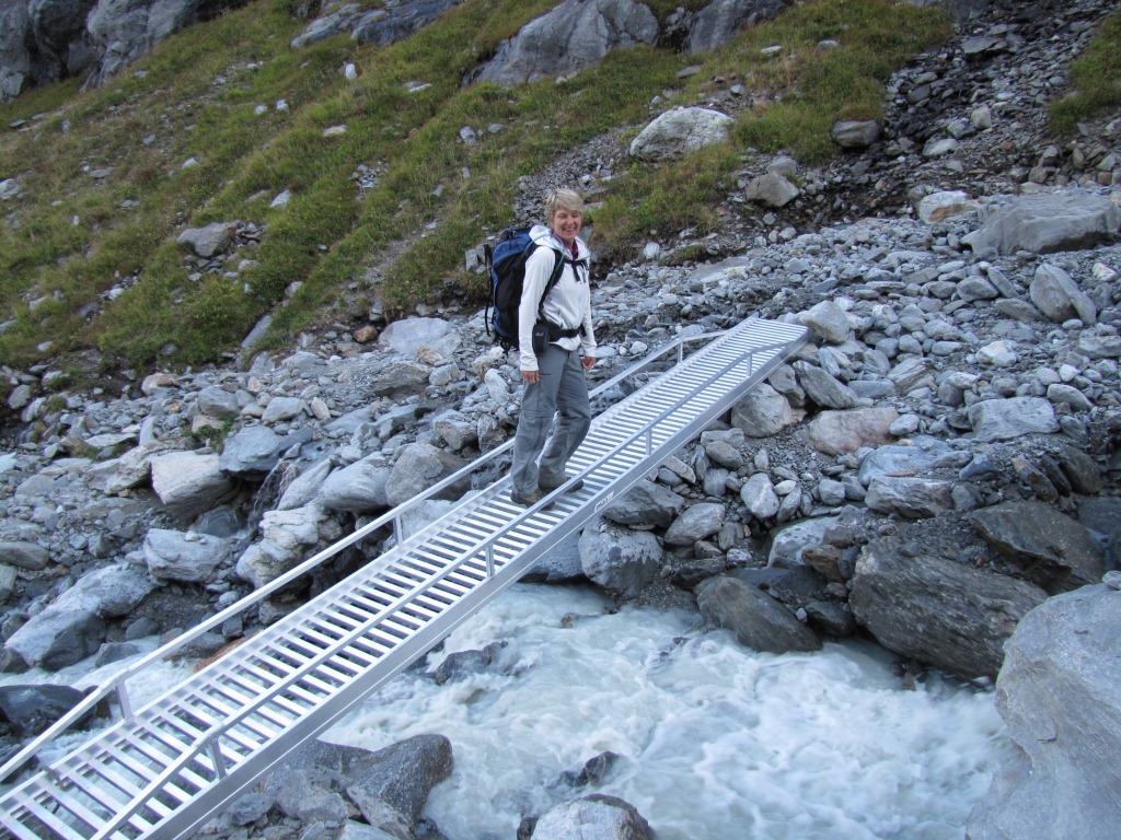 Mäusi hat auch den zweiten Gletscherbach überwunden. Die neue Brücke ist noch nicht installiert