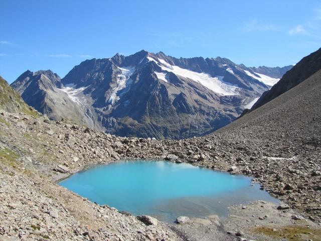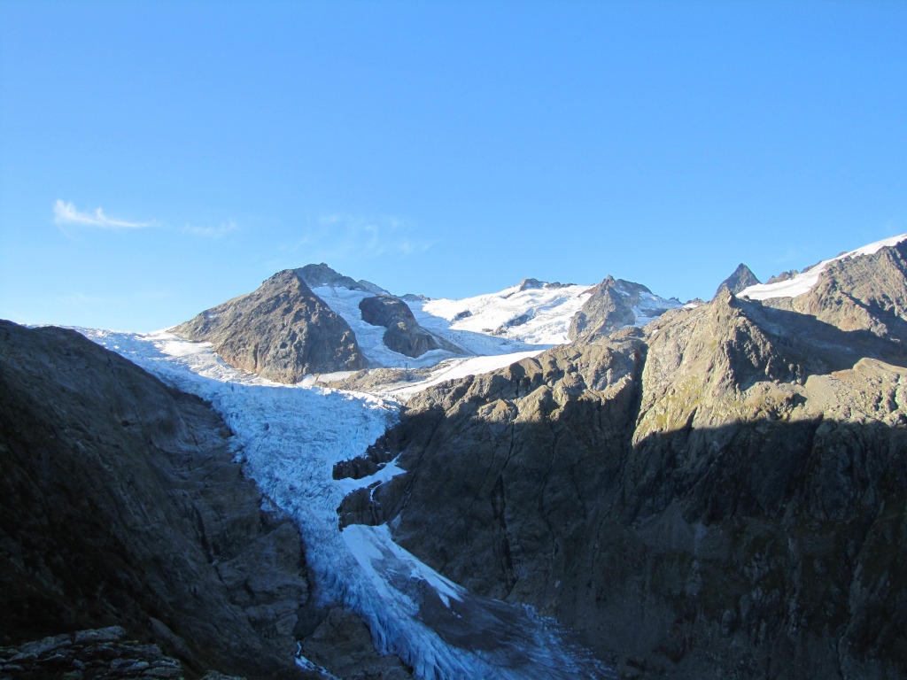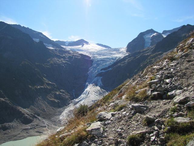 links oben, neben dem Triftgletscher liegt die Trifthütte, wo wir übernachtet haben