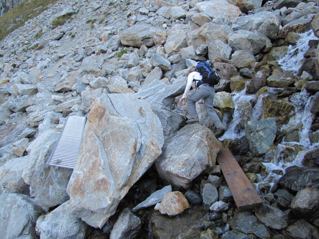 kurz nach Punkt 2057 m.ü.M. der Weg führt nun steil abwärts zum zweiten Gletscherbach