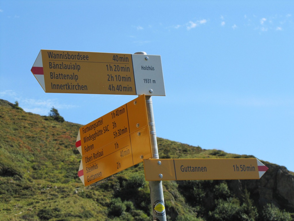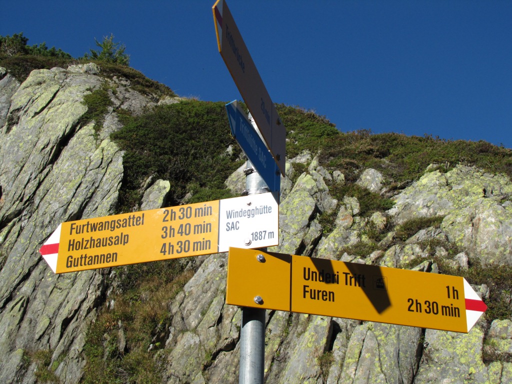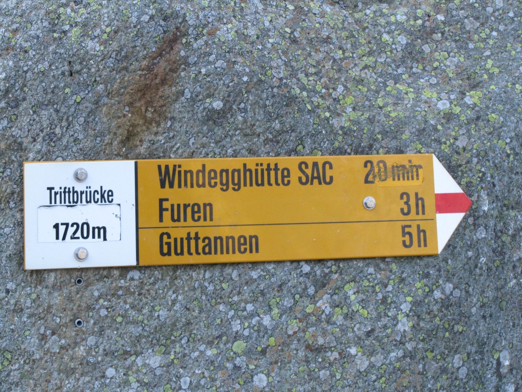 Wegweiser bei der Triftbrücke 1720 m.ü.M.