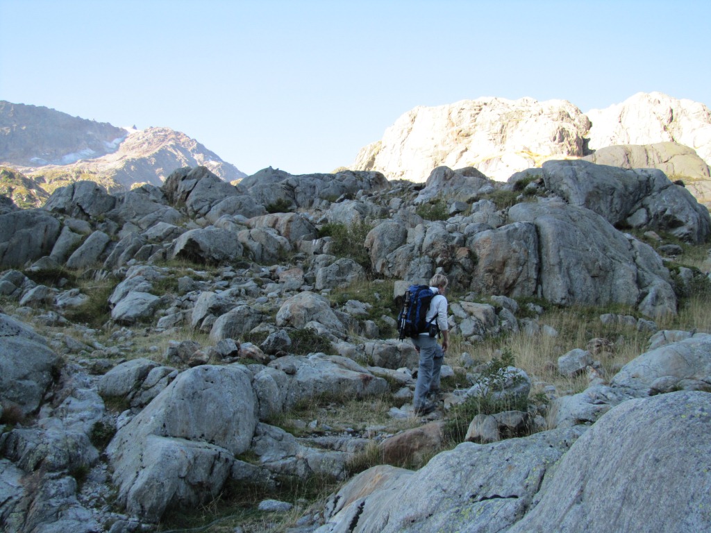 7:00 Uhr Franco zieht die Wanderschuhen an. Wir verlassen die Trifthütte 2520 m.ü.M.
