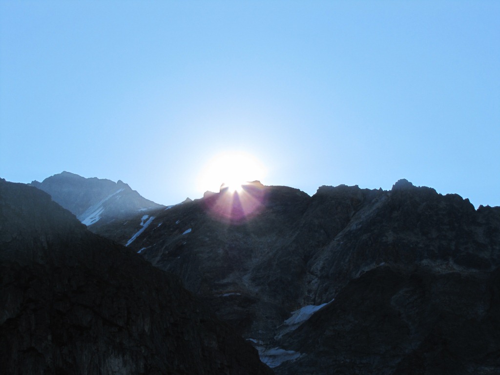 die ersten Sonnenstrahlen berühren den Diechterhorn. Es ist Zeit aufzubrechen