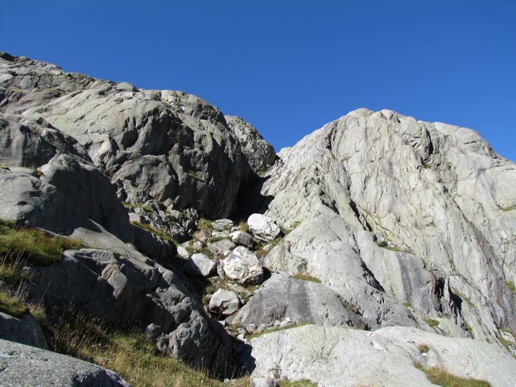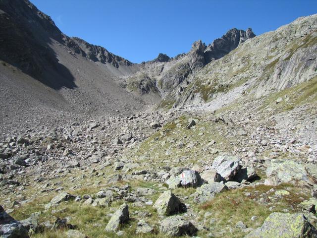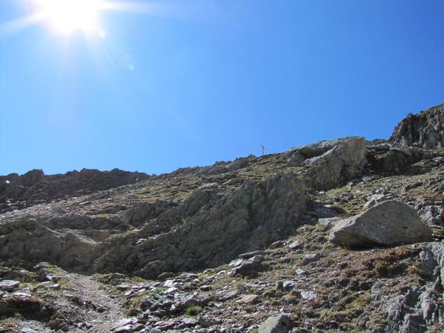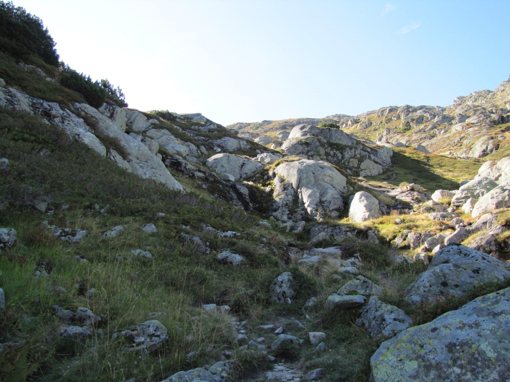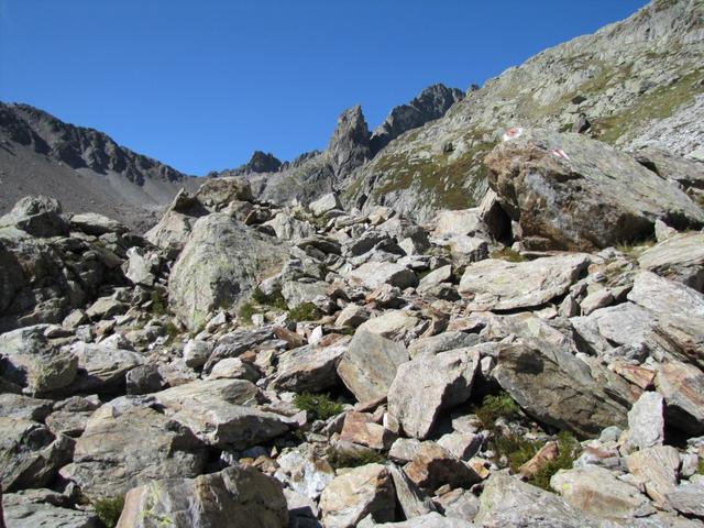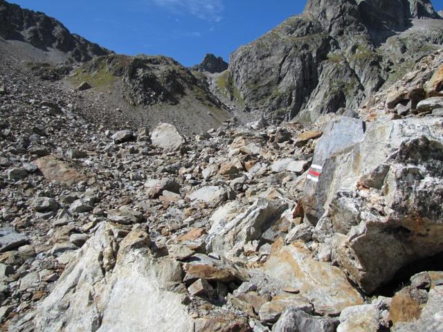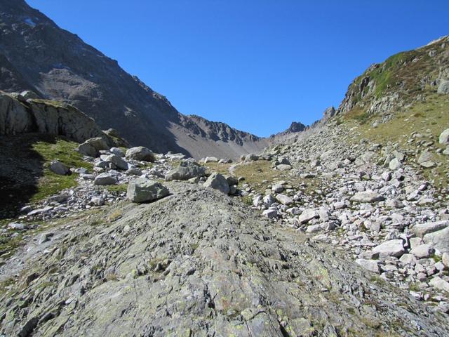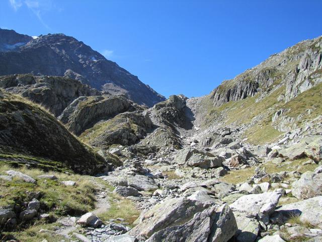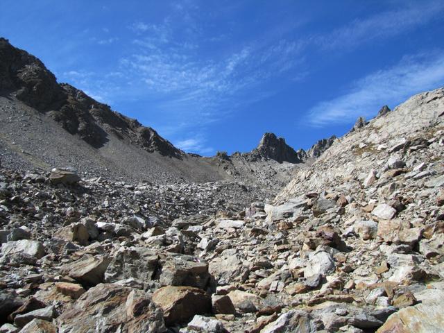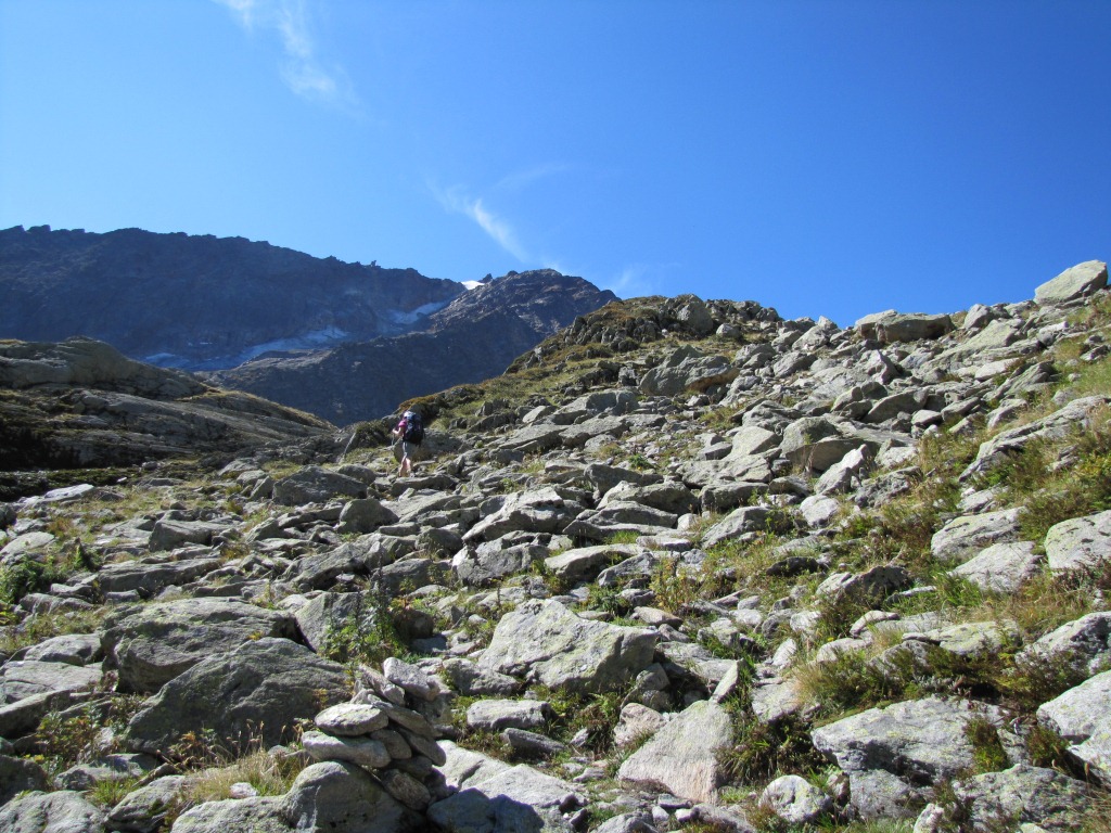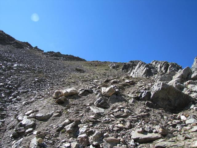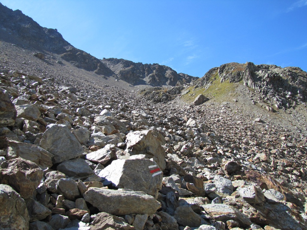der Weg führt nun nur noch über Geröll und Schutt