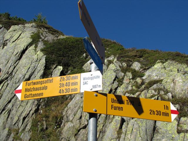 Wegweiser bei der Windegghütte 1887 m.ü.M.