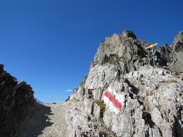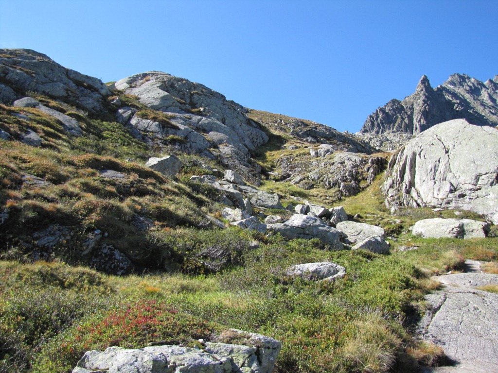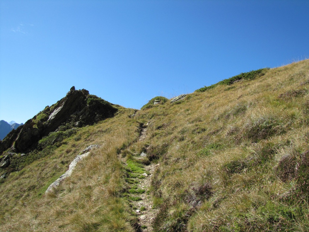 rechterhand von Punkt 2259 m.ü.M. führt der Weg aufwärts zum kleinen Grat