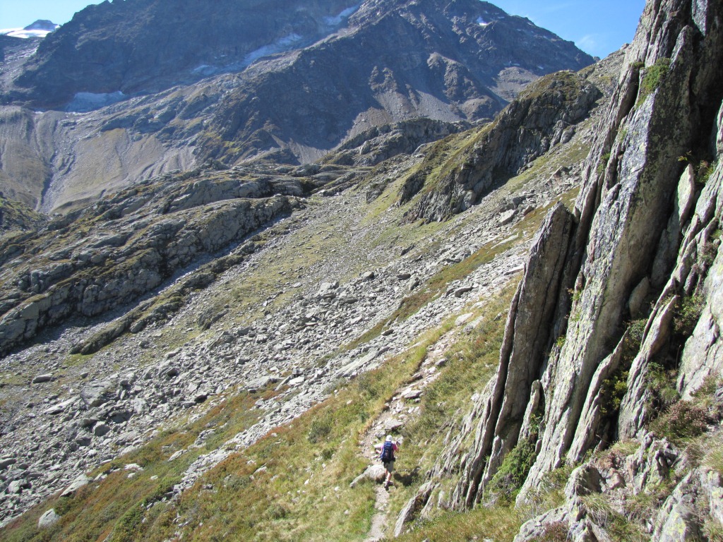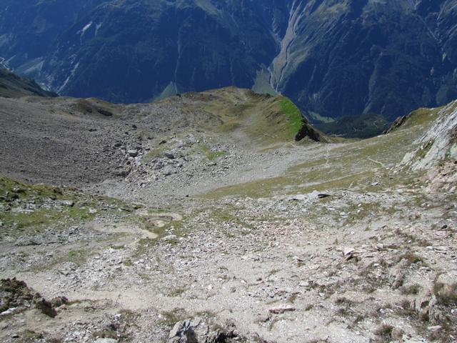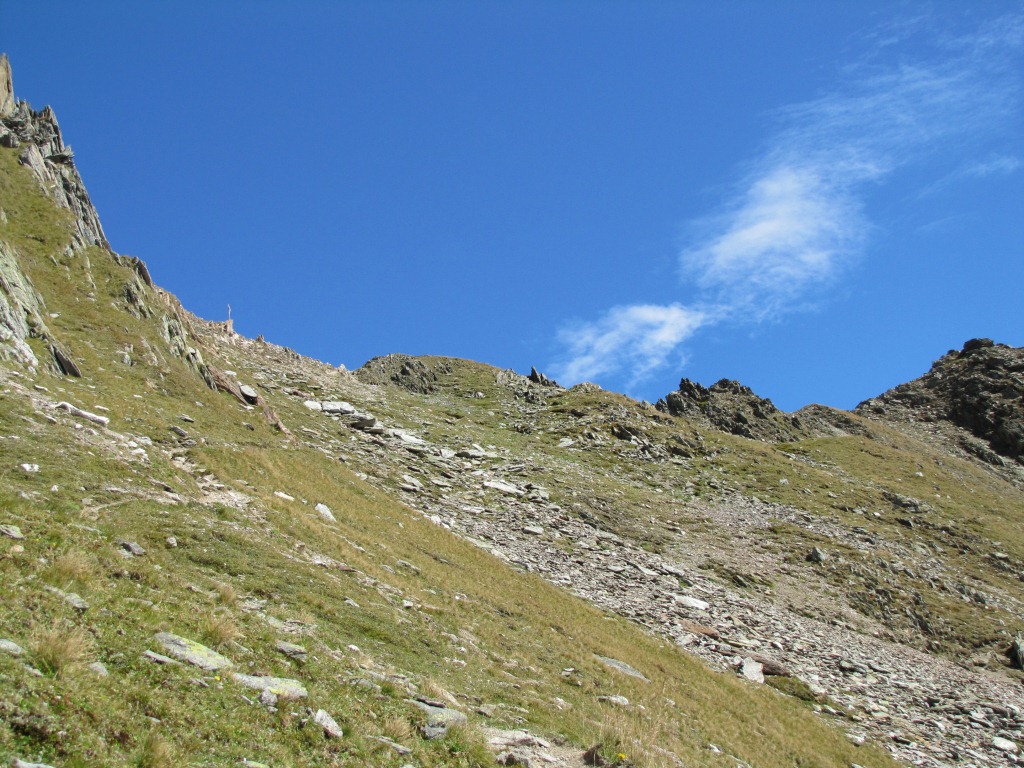 steil und rutschig über Schutt ist das letzte Teilstück kurz vor dem Furtwangsattel