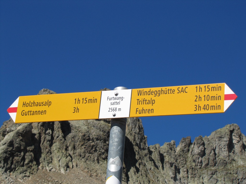 Wegweiser auf dem Furtwangsattel 2568 m.ü.M.