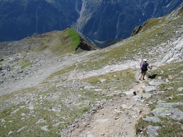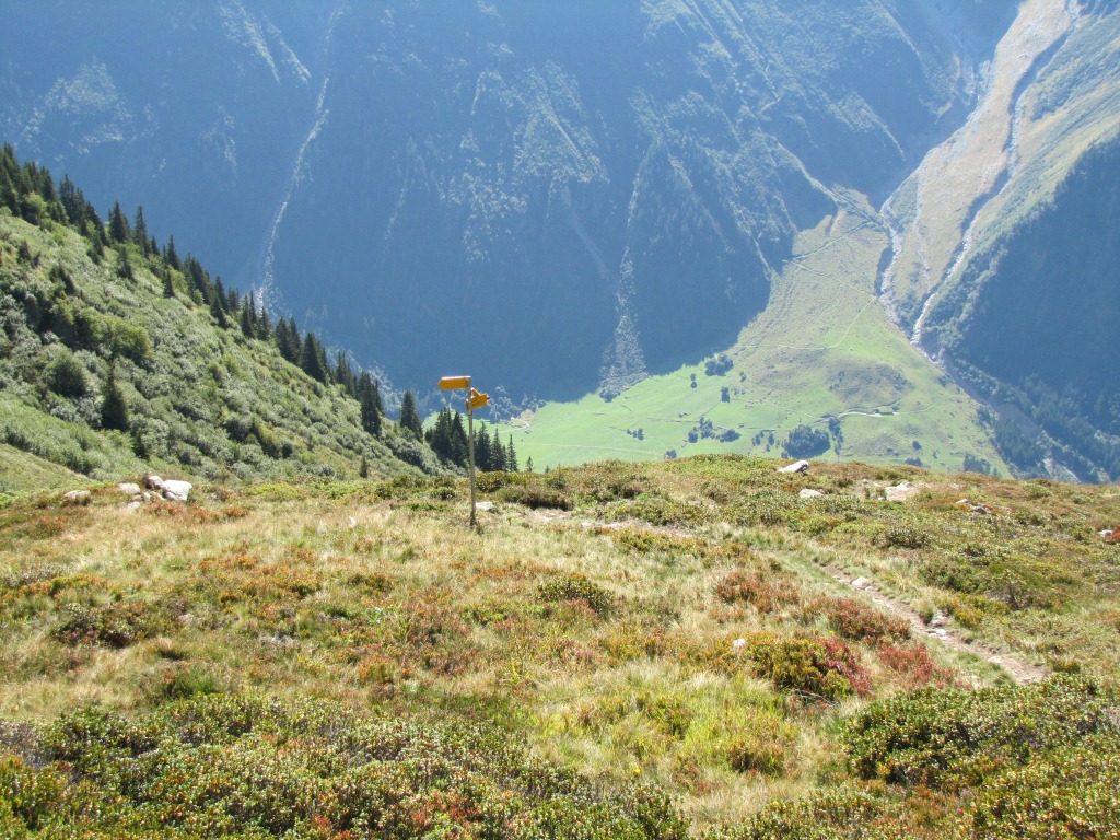 der Weg führt uns nun auf einfachem Wanderweg abwärts zu Punkt 2391 m.ü.M.