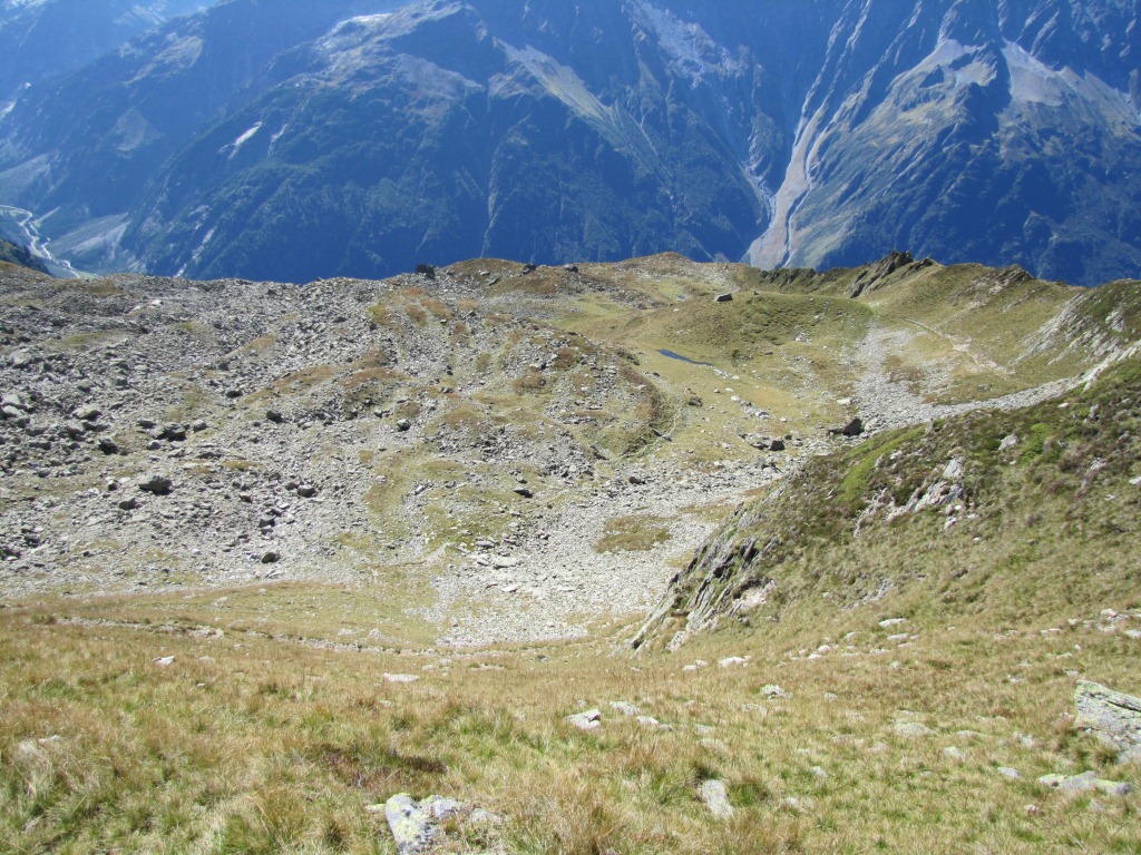 Blick abwärts ins Rindertal. Vom Furtwangsattel heisst es nur noch abwärts bis Guttannen