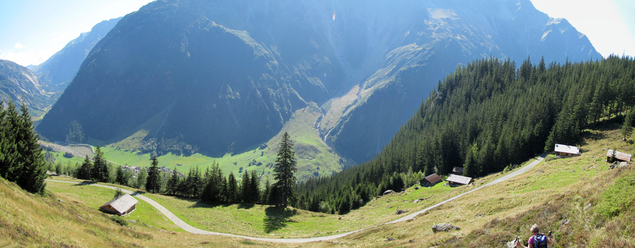 der ganze Bergpfad zur Trifthütte die wir am Vortag besucht haben, ist auf diesem Breitbildfoto ersichtlich