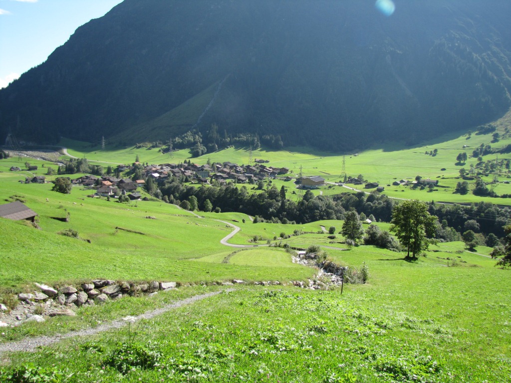 tief unter uns Guttannen. Gute Tannen müssen das Dorf vor Lawinen und Steinschlag schützen