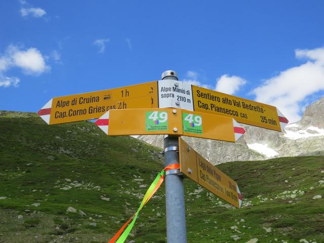 Wegweiser bei der Capanna Piansecco 1984 m.ü.M. Datum 21.01.2019