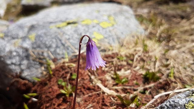 schon nach ein paar Tagen nachdem der Schnee geschmolzen ist, taucht die Alpen-Soldanelle auf Datum 21.01.2019
