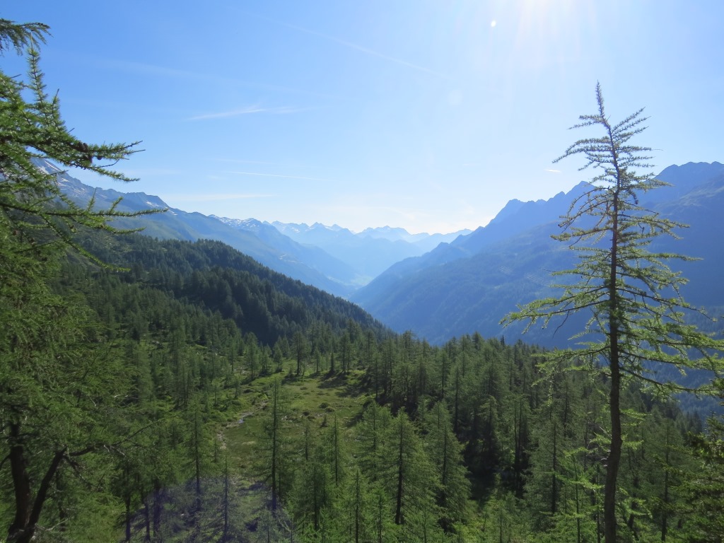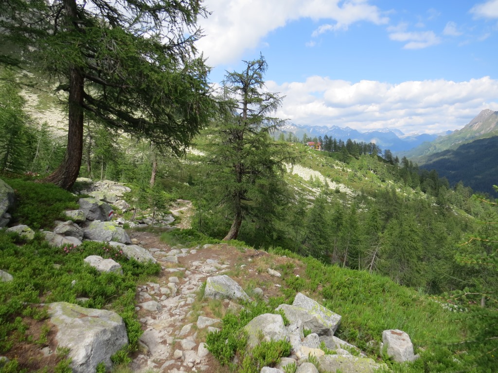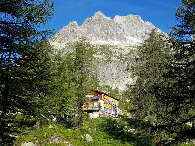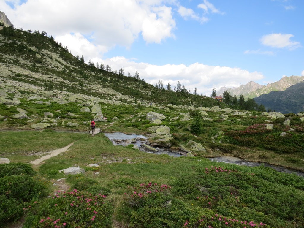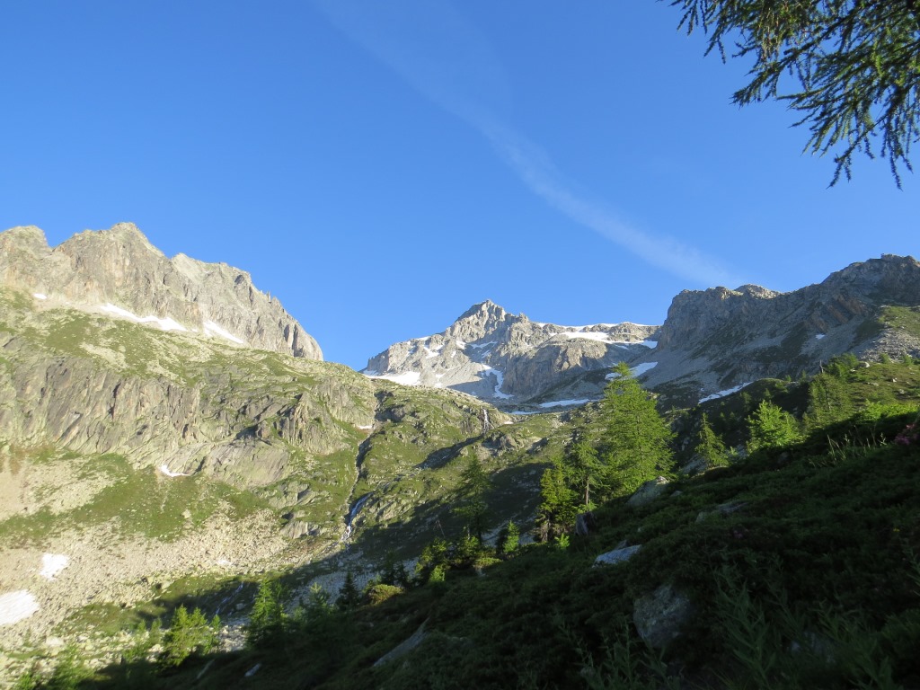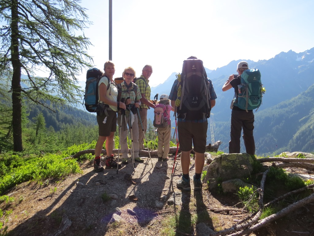 wir verlassen die im Schatten der letzten Lärchen, und auf einer Moräne gelegene Capanna Piansecco Datum 21.01.2019