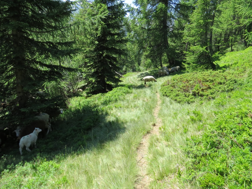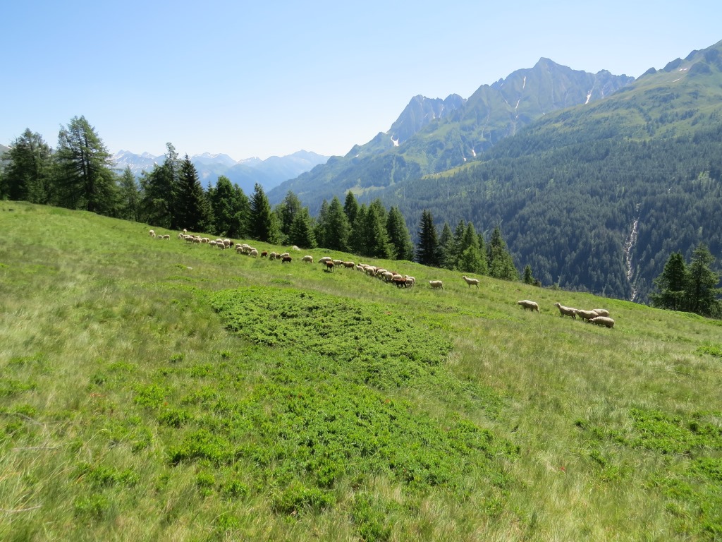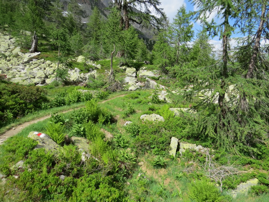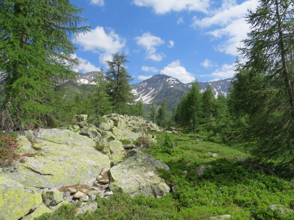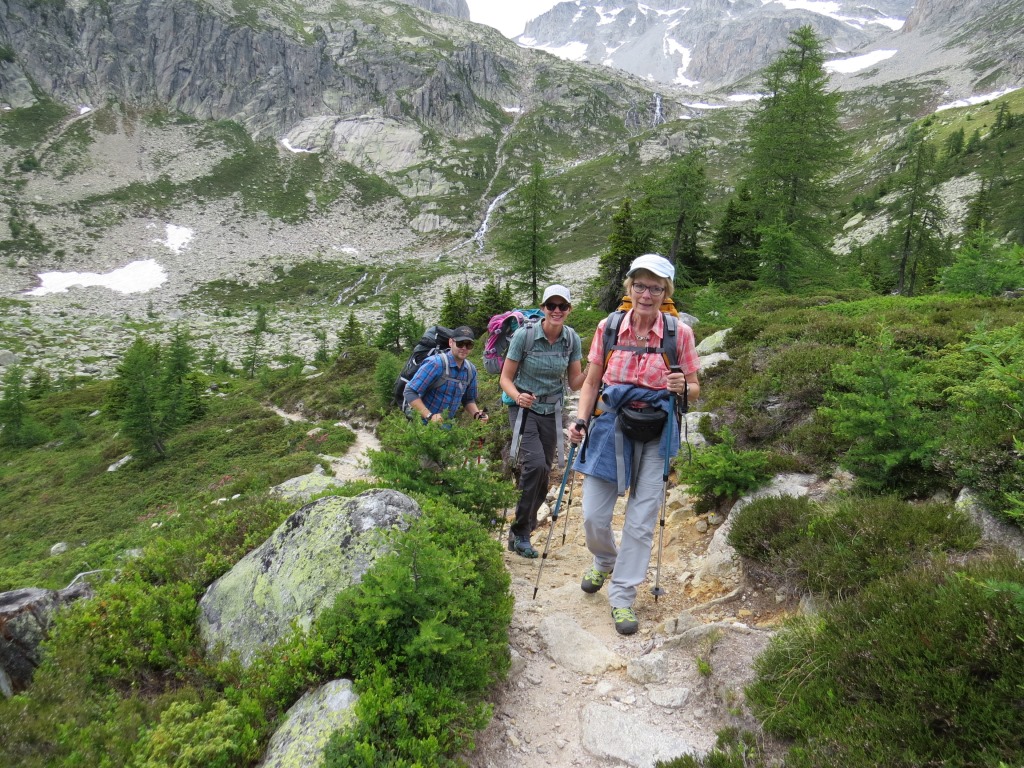 wir verlassen die im Schatten der letzten Lärchen, und auf einer Moräne gelegene Capanna Piansecco Datum 21.01.2019
