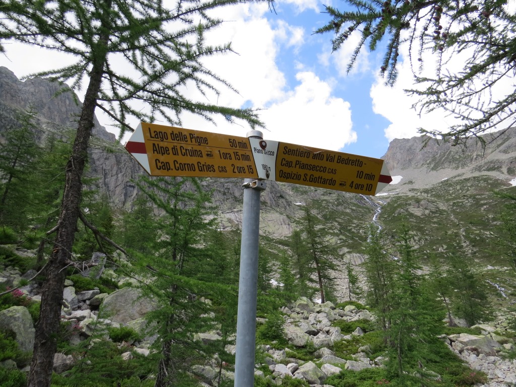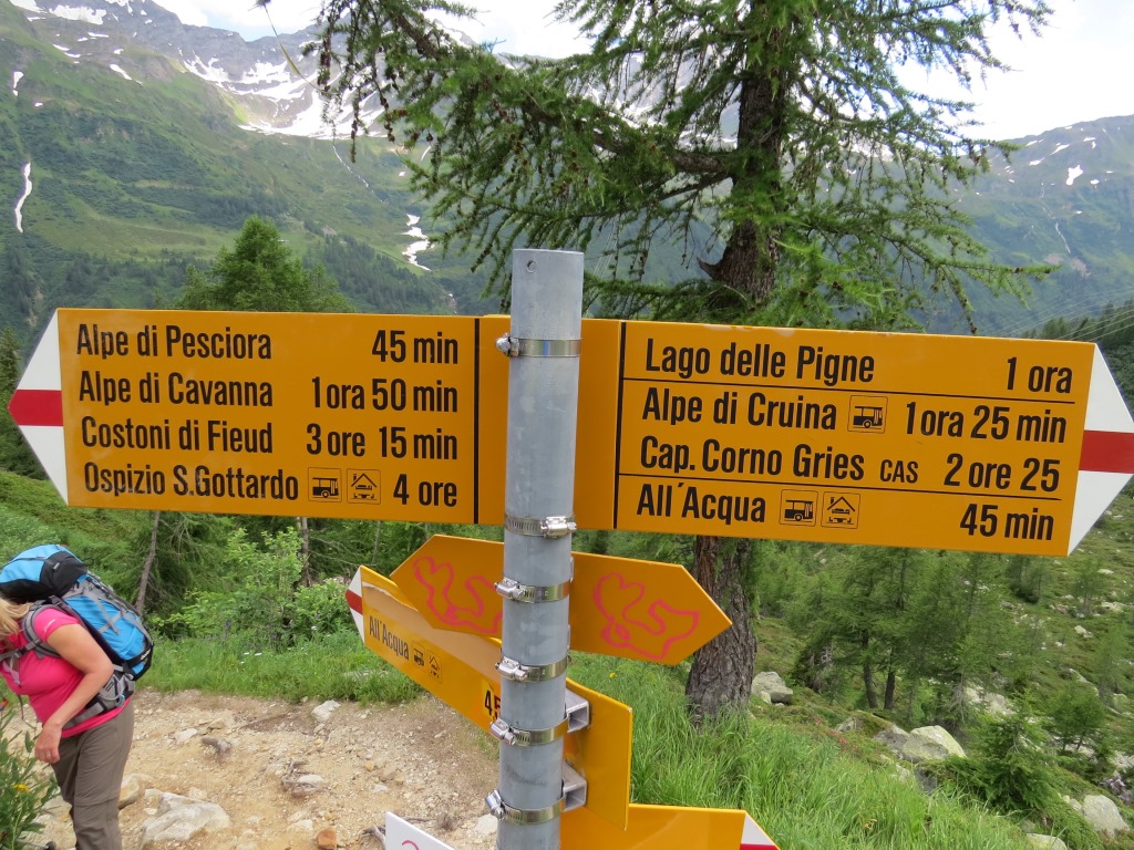 Weggabelung auf der Alpe di Pesciora 1920 m.ü.M. geradeaus geht es weiter Richtung Gotthardpass Datum 23.01.2019