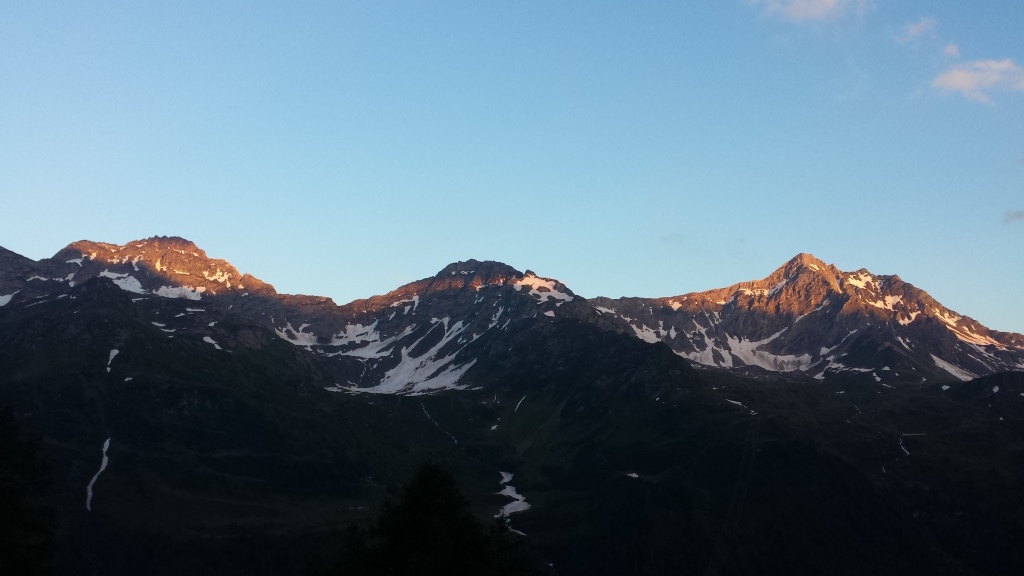 die letzten Sonnenstrahlen erhellen den Pizzo Folcra, Pizzo Carraresc und Poncione Val Piana Datum 21.01.2019