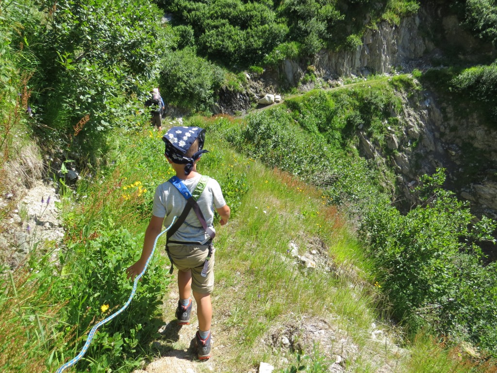 dieser Geröllhang führt fast senkrecht in die Tiefe. Die Kinder sind zur Sicherheit am kurzem Seil Datum 22.01.2019