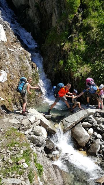 da die Steinbrücke zerstört ist, muss mit einem Sprung der Bergbach überquert werden Datum 22.01.2019