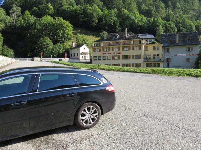 mit dem Auto über die Simplonpassstrasse nach Gabi. Beim Parkplatz direkt beim Hotel Gabi haben wir das Auto parkiert